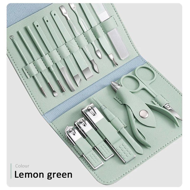 16pcs Manicure Set Pouch - Lemon Green