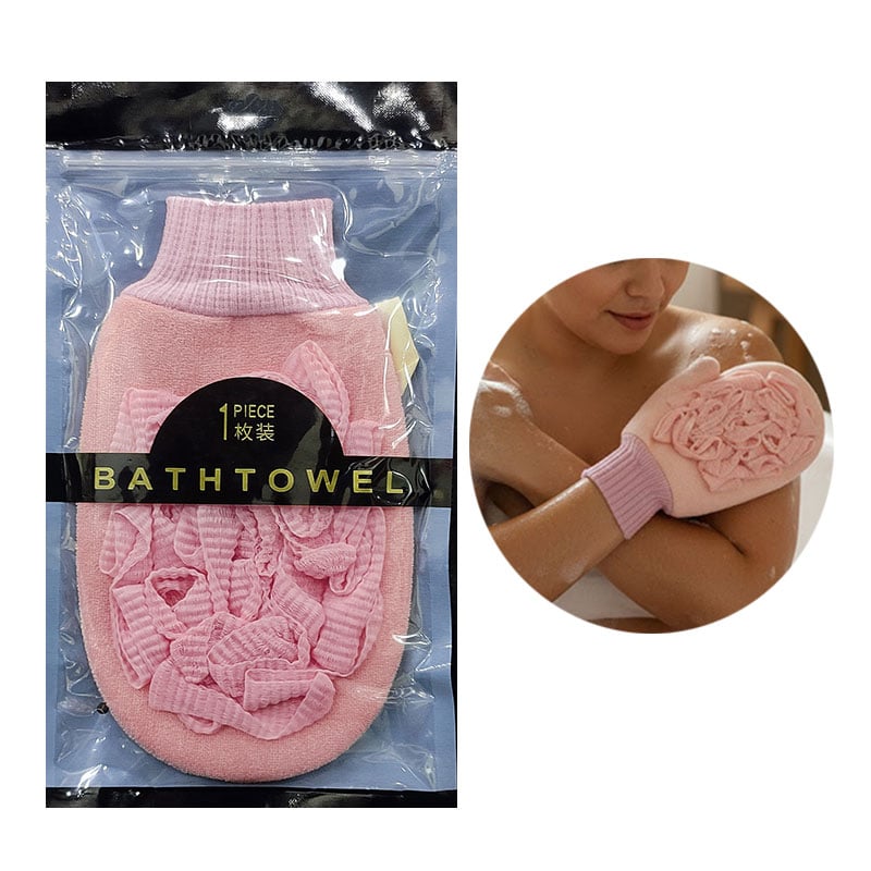 2 in 1 Exfoliating Glove Bath Scrubber - Pink