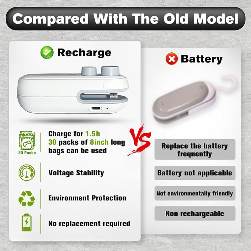 - The Vacuum Sealing Machine is equipped with a built-in rechargeable battery.