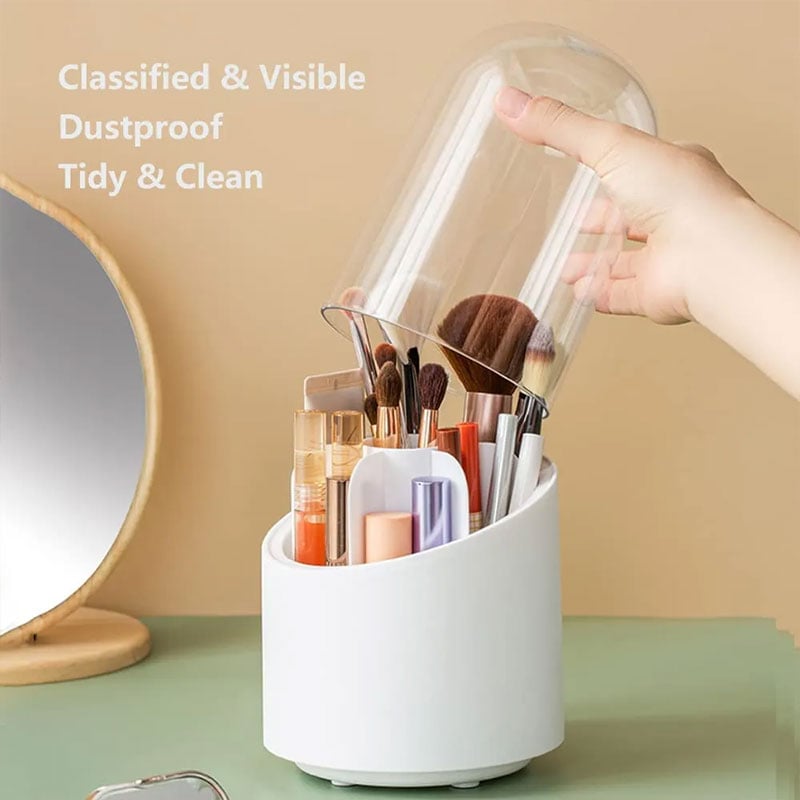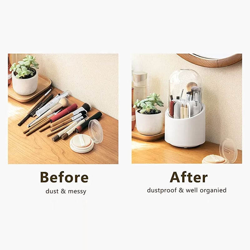 • Makeup brushes organized, accessible, and beautifully displayed with the 360-degree rotating feature.