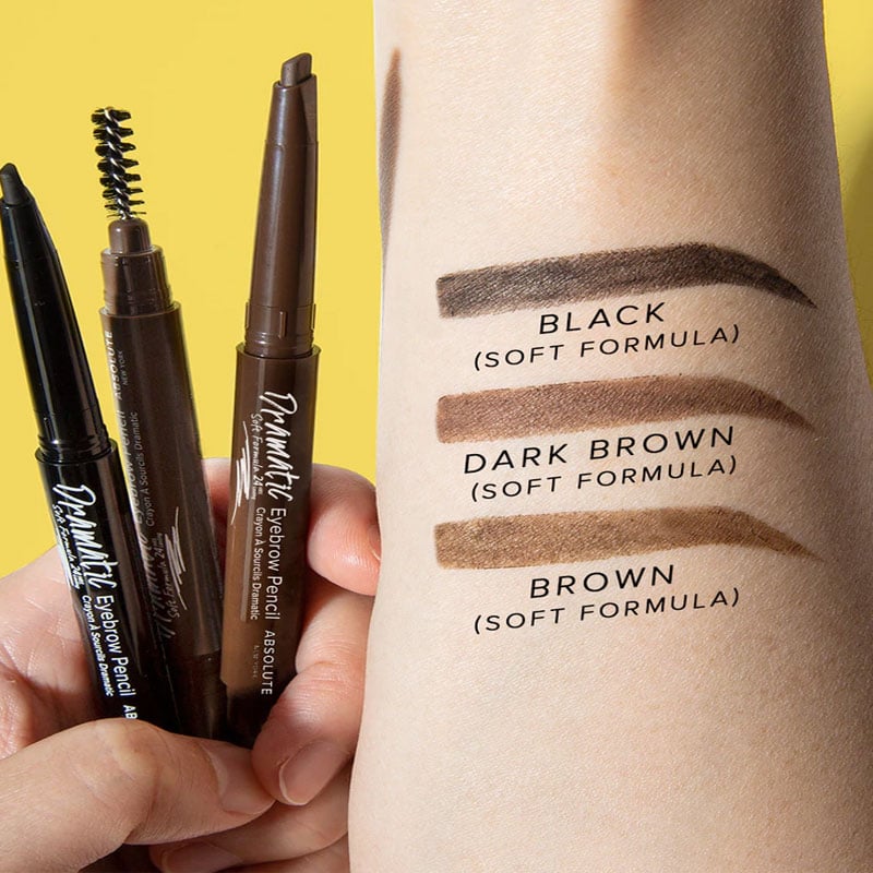 - A dual-ended eyebrow pencil to shape, fill, and define eyebrows for natural fullness.