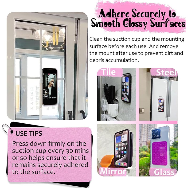 - Attach your smartphone to clean, flat surfaces like mirrors, showers and windows with ease.