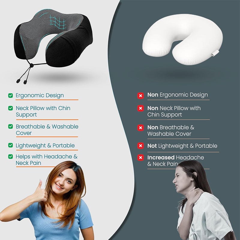 - Travel neck pillow supports your neck in a 360-degree manner to hold your chin in a straight position.