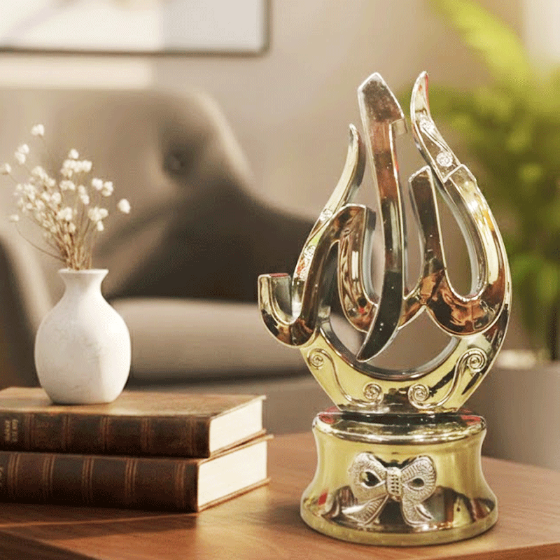 - Arabic Calligraphy Tablepiece Allah Add a touch of elegance and spirituality to your space with this Arabic Calligraphy Tablepiece featuring Allah in exquisite script.