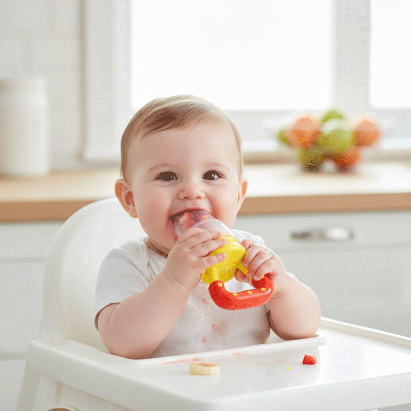 - SAFETY OF BABIES IS PRIORITY FOR US: This baby fruit feeders are made with certified premium 100% Food Grade Silicone that’s BPA, PVC, Latex, Latex, Metals, Phthalate, Toxic and Rust free. This feeders allow your baby to gum on solids long before teeth come in. Best of all, you don’t have to worry about your baby putting choke-sized chunks of food into mouth.