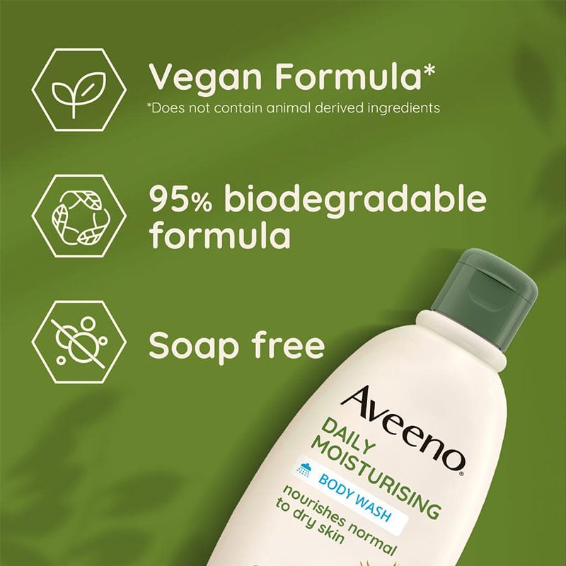 - Aveeno Daily Moisturizing Body Wash for dry skin with soothing prebiotic oat to nourish skin.