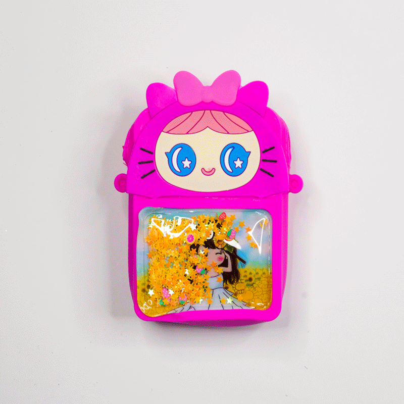 Baby Cartoon Silicon Popit Bag With Stardust - Deep Pink