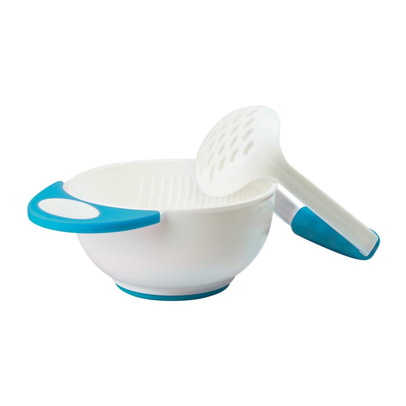 Baby Food Masher and Serve Bowl - Sky Blue & White