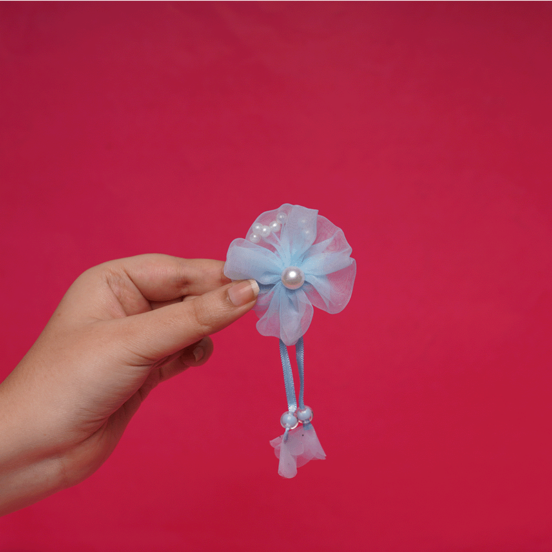 Baby Net Flower With Pearl Lace 1 pair - Sky Blue