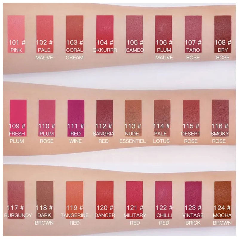 - Don’t rub your lips together after applying; let the lipstick dry naturally for 30-60 seconds to set the matte finish without smudging.