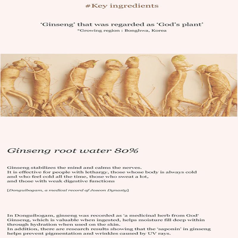- This refreshing essence-meets-toner delivers deep hydration with 80% ginseng root water.