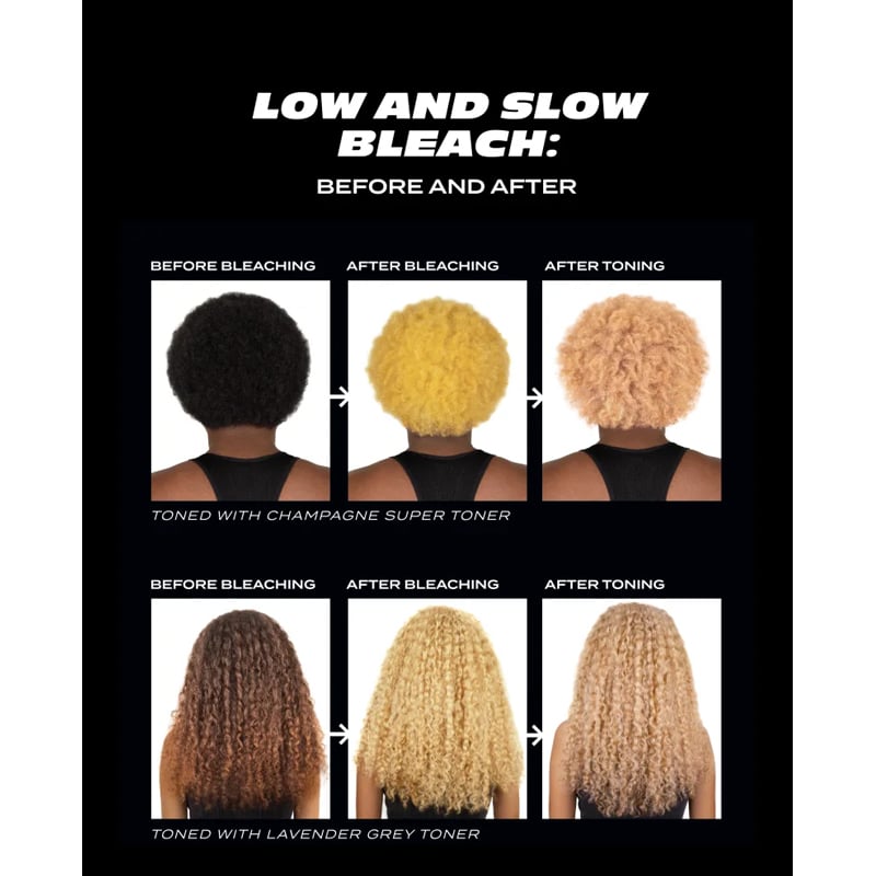 - This bleach is made with White Clay Powder, which forms a shield around your hair as it lightens, allowing it to process more efficiently with a lower volume of developer, delivering a controlled, yet impressive lift.