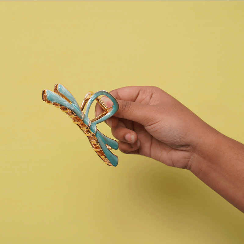Bow Shape Metal Hair Clip - Till Green