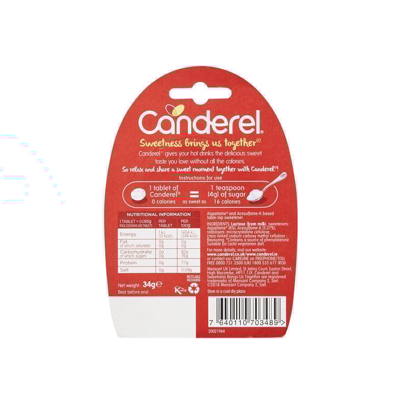 - Canderel Low Calorie Sweetener 400 Tablets.