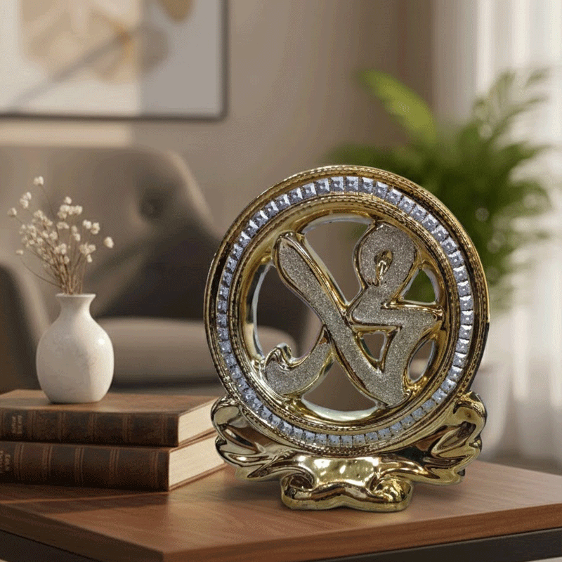 - Elevate your space with this elegant Calligraphy Tablepiece featuring the name Muhammad in beautifully crafted Arabic script.