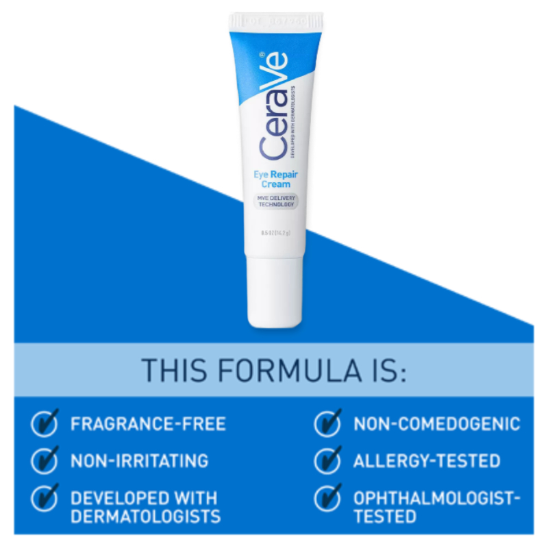 - CeraVe Eye Repair Cream is ophthalmologist-tested and features a non-greasy, fast-absorbing, fragrance-free formula that works to minimize the appearance of dark circles and eye puffiness.
