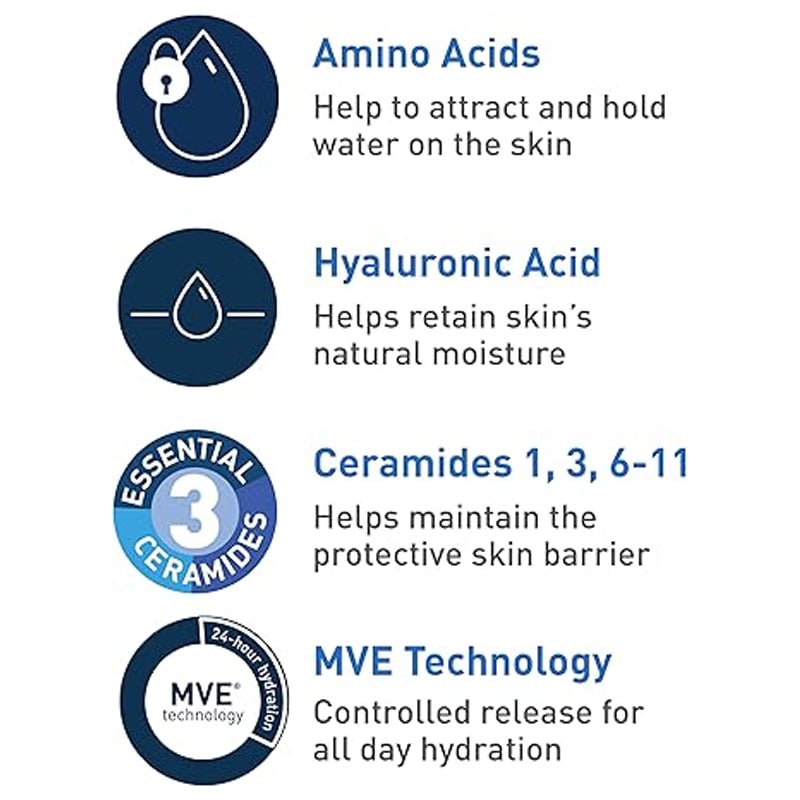 - With 3 essential ceramides to help protect the skins natural barrier.