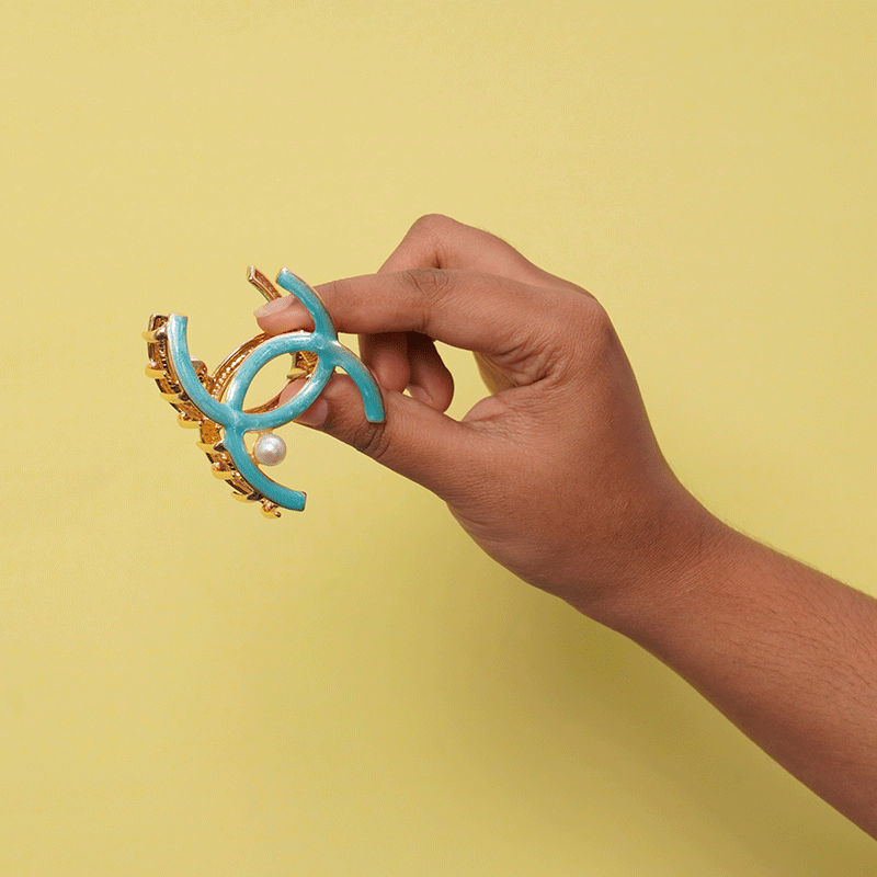 Chanel Style Metal Hair Clip - Teal Green