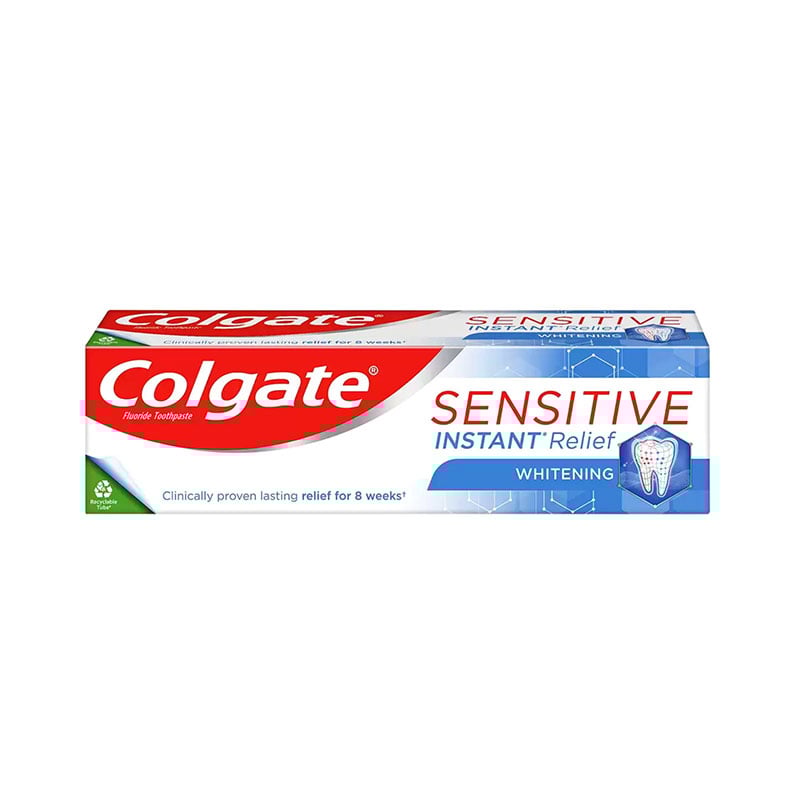 - The New Colgate Sensitive Instant Relief Whitening Toothpaste starts blocking sensitivity pain instantly.
