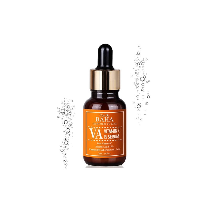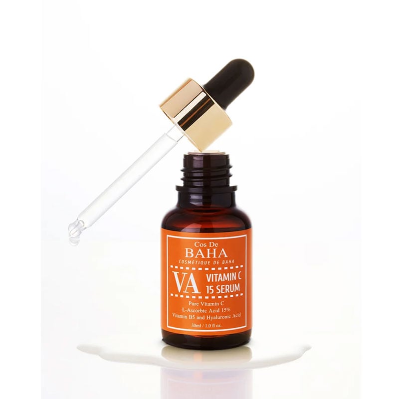 - COS DE BAHA Vitamin C 15% Serum brightens and evens out skin tone for a radiant complexion.