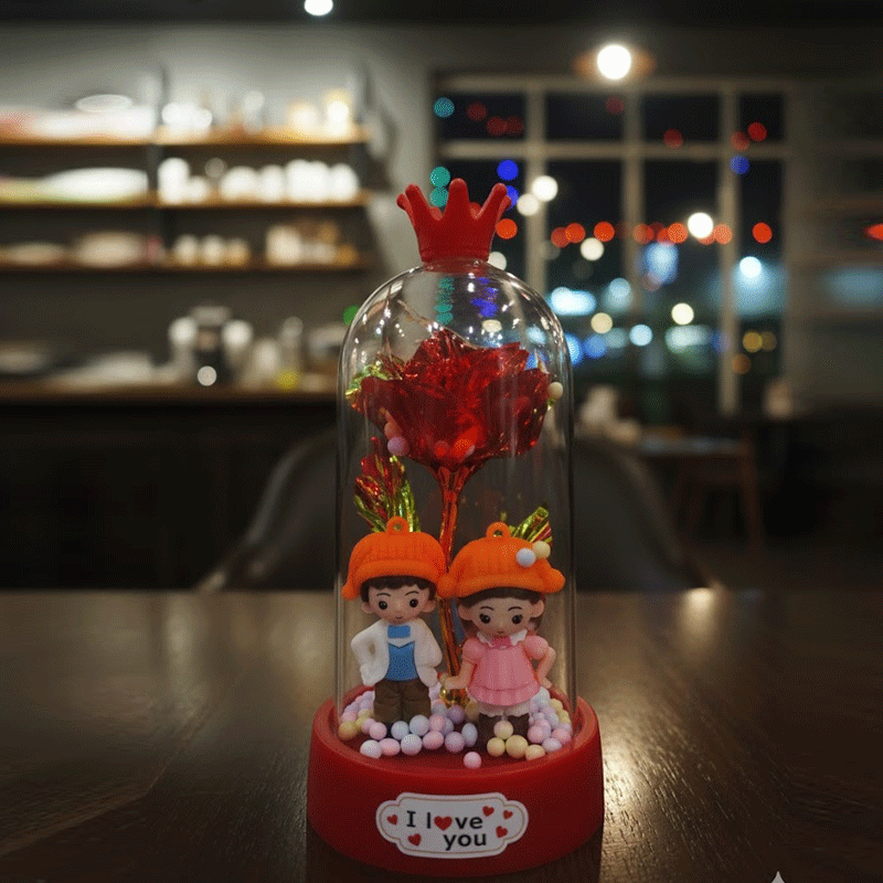 - Create a warm and romantic atmosphere with this Couple LED Dome Lamp With Rose. Beautifully designed under a clear dome, the couple figurine is softly illuminated by gentle LED lighting, making it a perfect symbol of love and togetherness.
