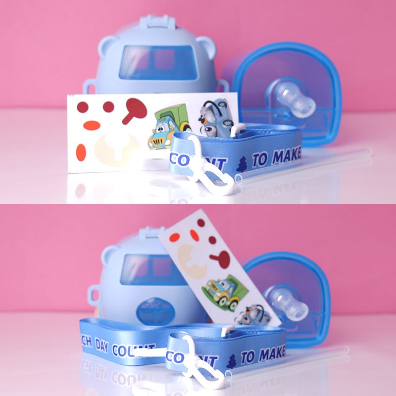 - Include movable wheels at the bottom, allowing children to play with it as a toy car when not drinking from it.