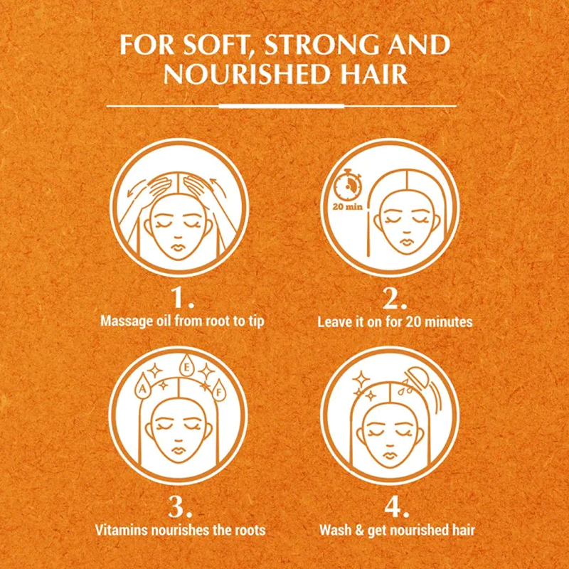 - DIRECTION FOR USE: For beautiful, nourished hair, apply this massage oil from your roots to the tips of your hair, and then leave the oil on for 20 minutes to allow the nourishment to penetrate deeply. Afterwards, rinse your hair thoroughly. Enjoy the beautiful, healthy shine of your nourished hair.
