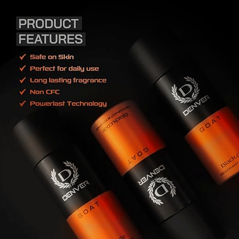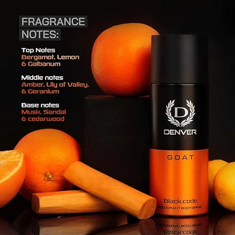 - Embrace your individuality and confidence with Denver Goat Black.Code Deodorant Body Spray, where every spray leaves a lasting impression.