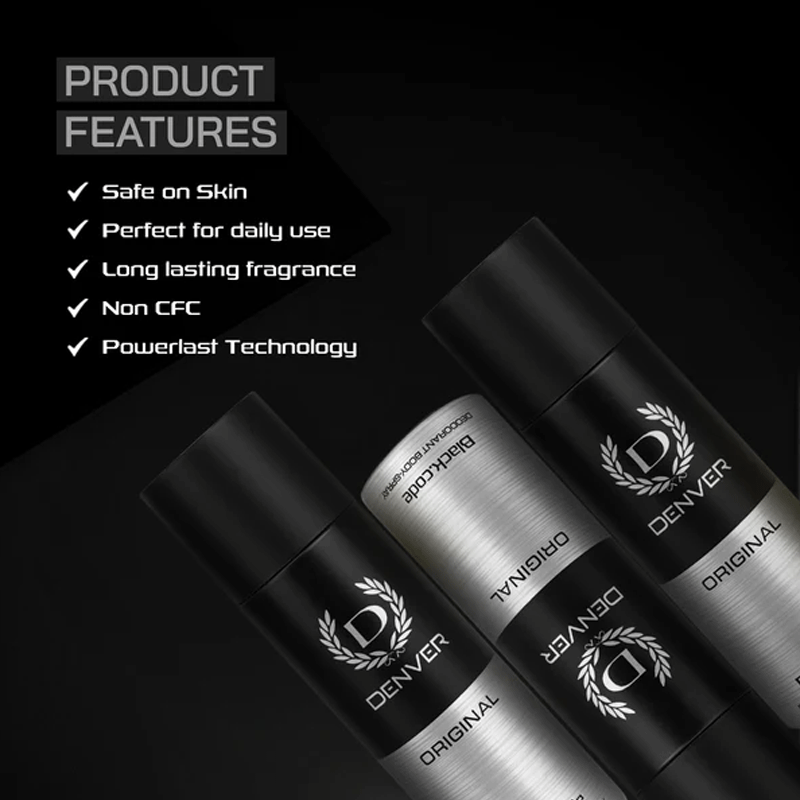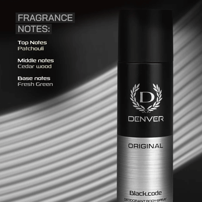 - Denver Black code Original deo quintessential masculine fragrance is both fresh and sensual.