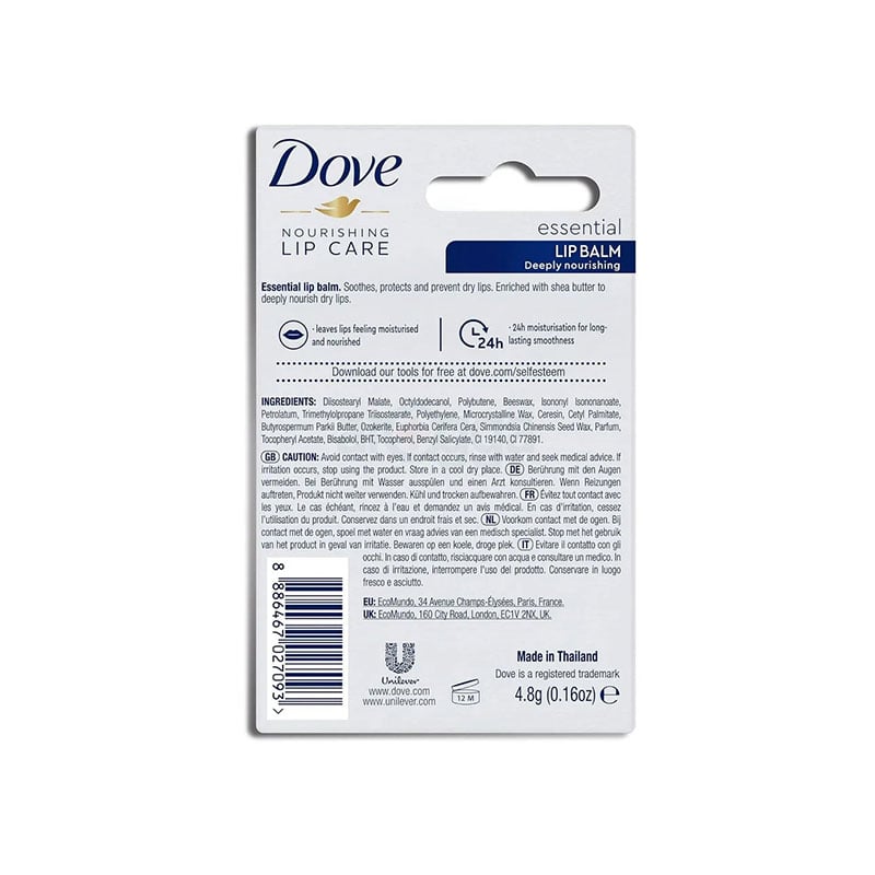 - Dove essential intensive lip balm is designed to provide long-lasting hydration and protection for dry, chapped lips.