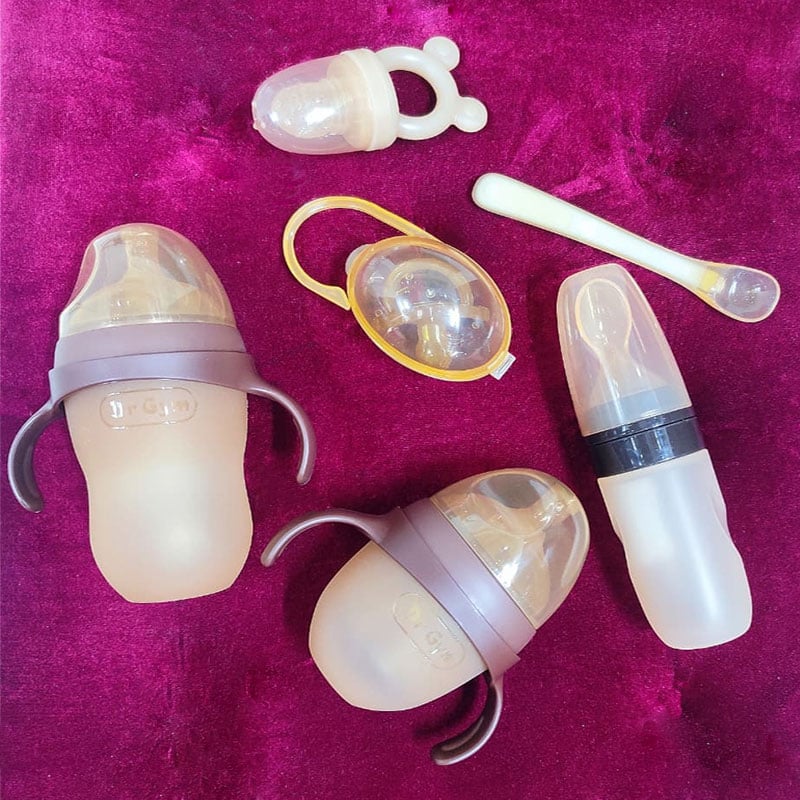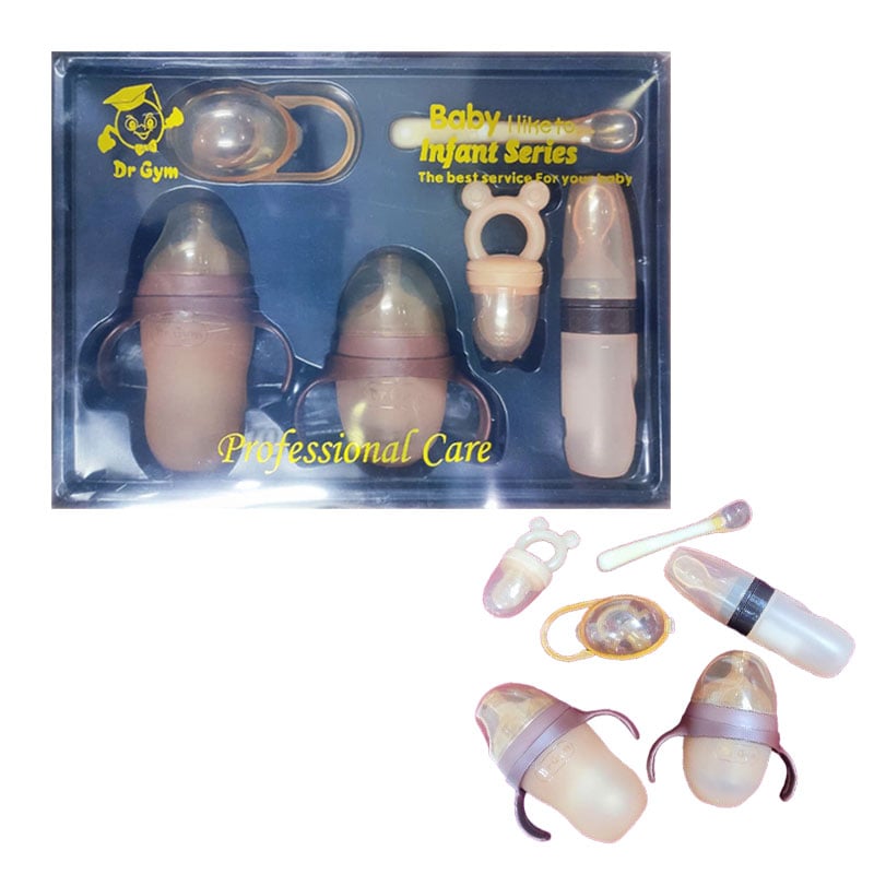 - The Dr Gym Professional Care Infant 6pcs Set shown is a comprehensive collection of essential feeding and soothing items for newborns and infants.