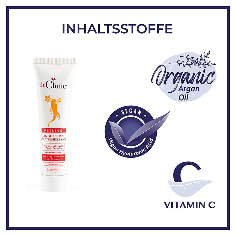 - Dr. Clinic Antioxidant Skin Cleansing Peeling Scrub is a gentle yet effective exfoliating treatment that helps to remove dead skin cells and impurities.