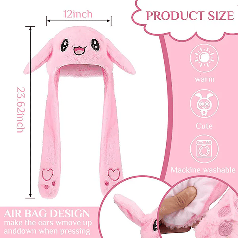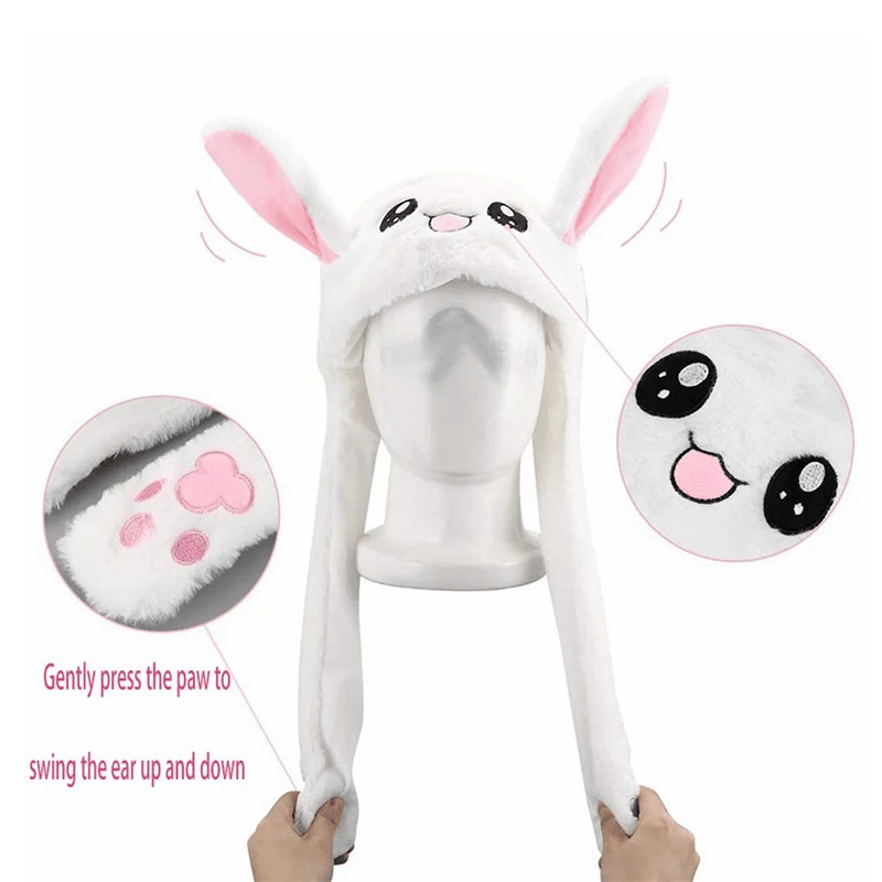 - Gently press the paws to make the bunny ears jump up and down, keeping kids engaged and making it a fun toy plus winter cap for home, travel and picnics.