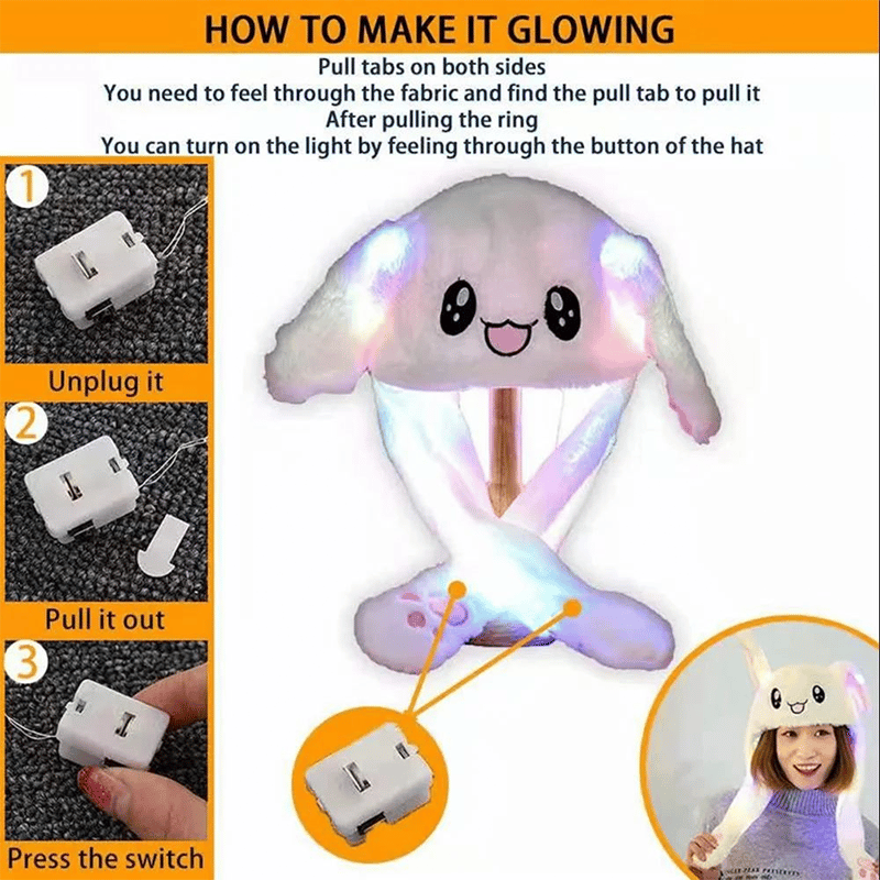 - Super-soft plush Ear Pop Up Lighting Cap with long ears and bright multicolour LED lights, perfect for selfies, reels, parties and night outings for girls, boys, teens and adults.