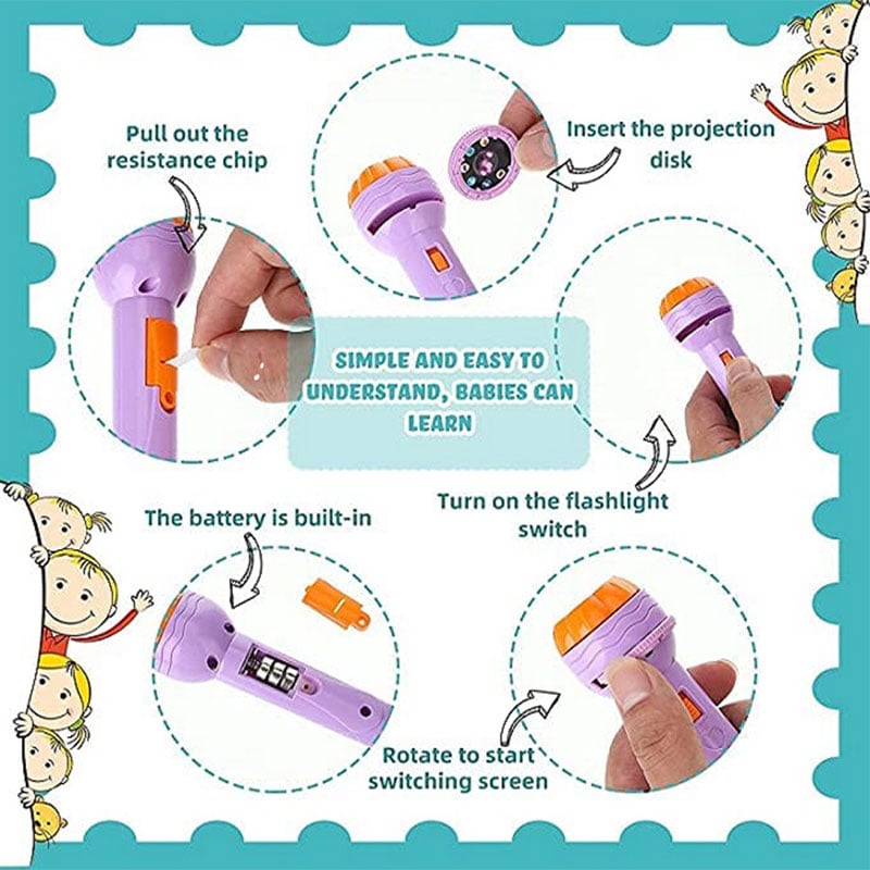 - This flashlight can attract children's attention, not only can let children know optical common sense, but also can learn various animals and fruits through images, stimulate children's curiosity and imagination.