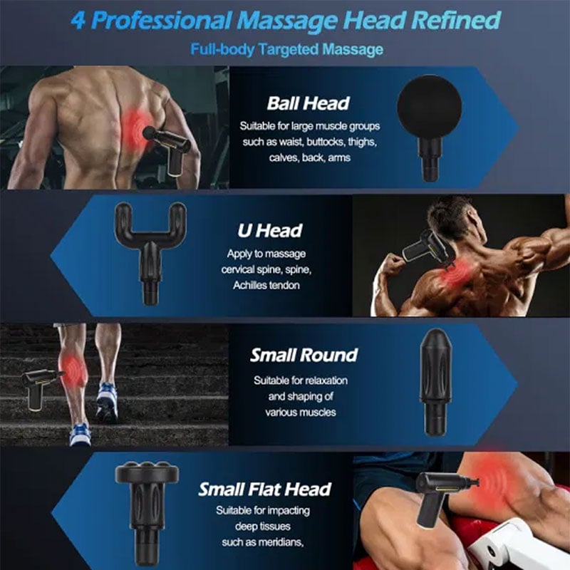 - Interchangeable head in 4 shapes to target specific muscle group for faster recovery.