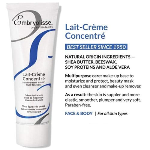 - Embryolisse Lait-Crème Concentré is a three-in-one moisturising lotion, primer and make-up remover.