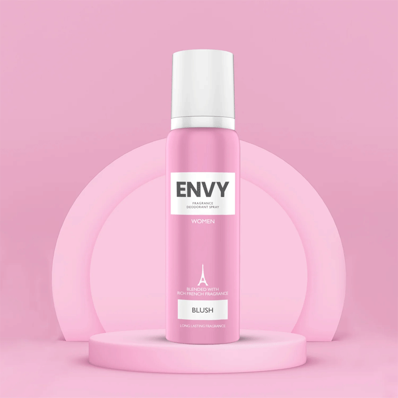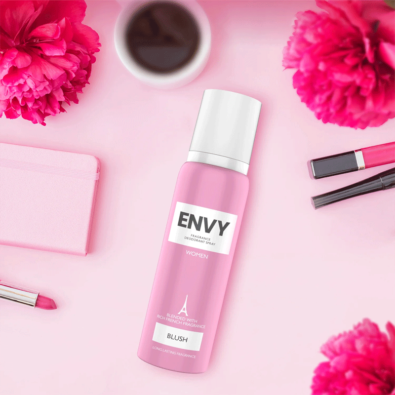 - ENVY Blush Deodorant is a captivating fragrance spray designed for women who radiate charm and confidence. This 120ml deodorant offers a delightful scent that combines freshness with elegance, making it perfect for everyday wear or special occasions.