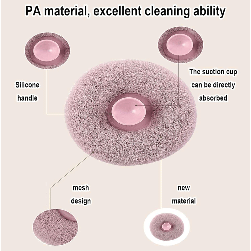 - Latest Upgraded: The Bath Sponge Cleaning Brush Is Adopted 0.1Mm Fiber Knitting Technology, Fine Mesh, High Elasticity, High Softness, Nodeformation, Dense Foam, Ergonomic Design, Silicone Handle, Non-Falling Off Not Easily, For Left-Handed And Right-Handed People, Which Is More Convenient.