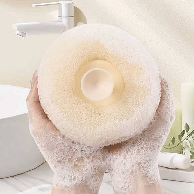 - Super Soft Exfoliating Bath Sponge Loaf: The sponge, which softens when put in water, you can take it out at will. The shower sponge ballsuits team with a rich soap or body wash, and can save 20% of bath foam usage. Comes with a hanging rope for easy drying.
