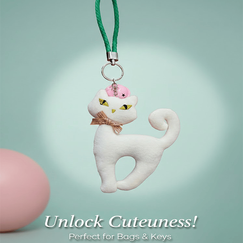 Fancy Cat With Rattle Ball Key Ring - White