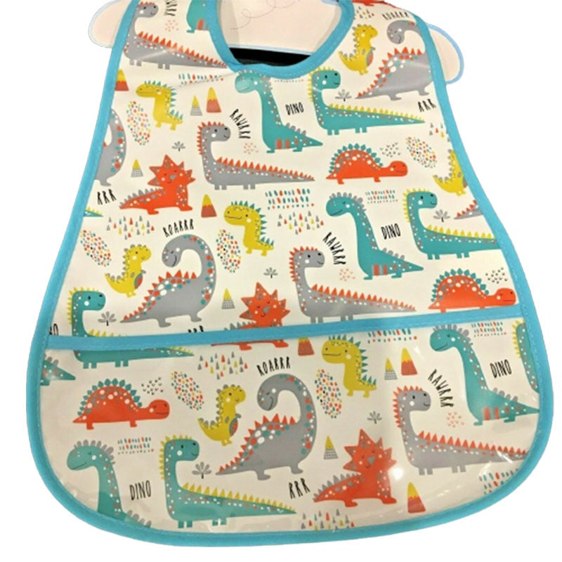 - Handy wipe clean cover up baby bib with integral crumb catcher pocket.