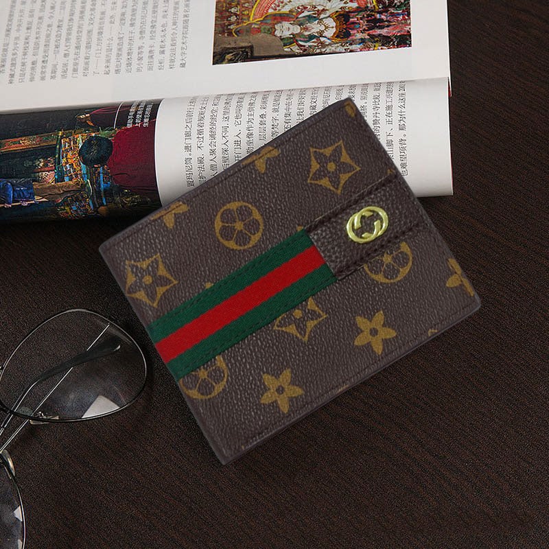 - The bi-fold wallet is presented with the green and red web stripe and double C hardware.