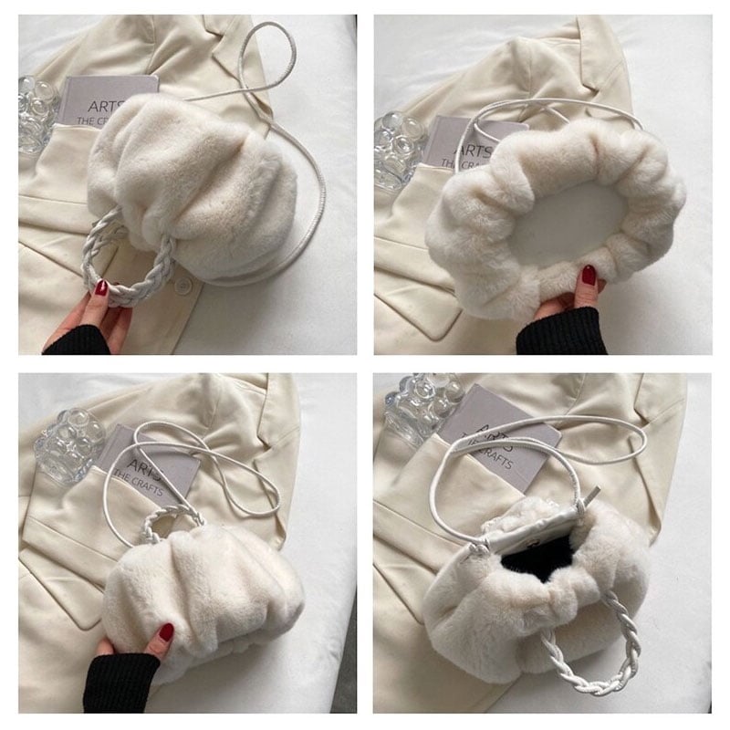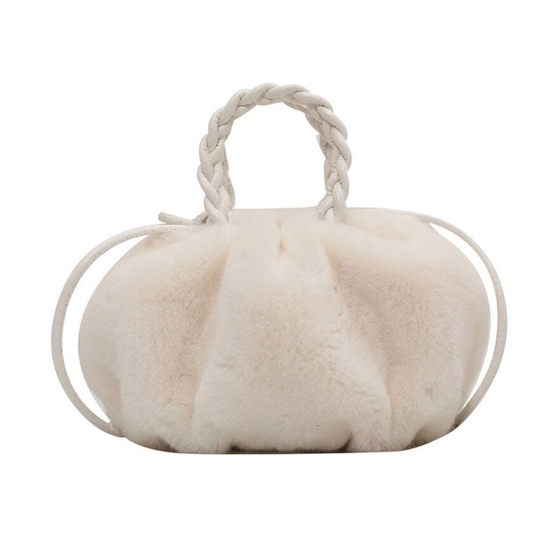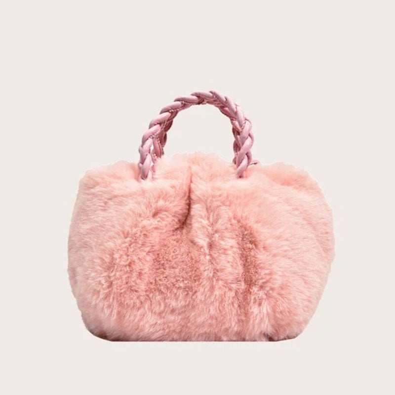 Fluffy Cozy Women PU Leather Handle Crossbody Bag