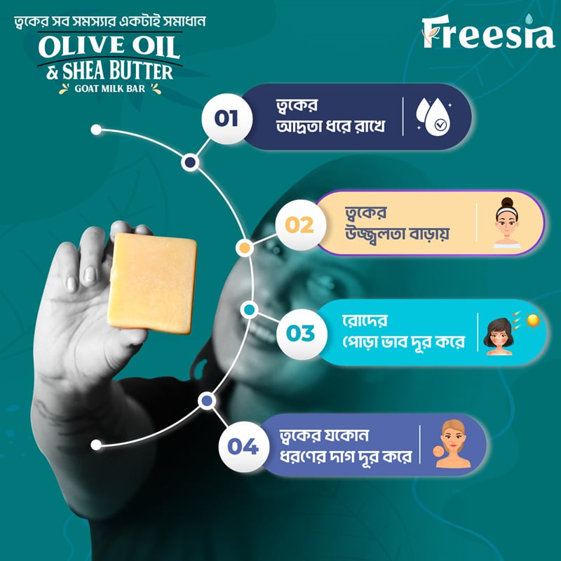 Freesia Olive Oil & Shea Butter Goat Milk Bathing Bar 100g ( Free Loofah)