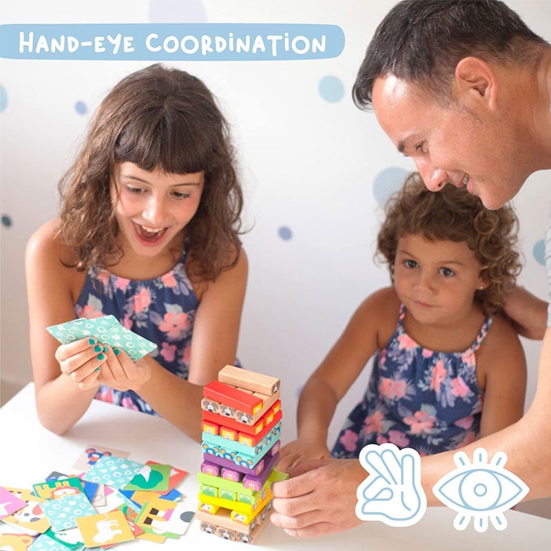 - BOOSTS 6 KEY SKILLS: Nene Toys Tumble Tower is more than just a game. It's an educational tool that stimulates creativity, logical thinking, understanding of basic physics, fine motor skills, eye-hand coordination, and problem-solving - all through play!
