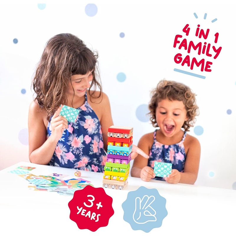 - 4 GAMES IN 1: Enjoy endless fun with four unique game modes: Colour-match with a dice roll, use animal cards for block selection, unleash creativity with imaginative builds, or set up engaging domino chains.