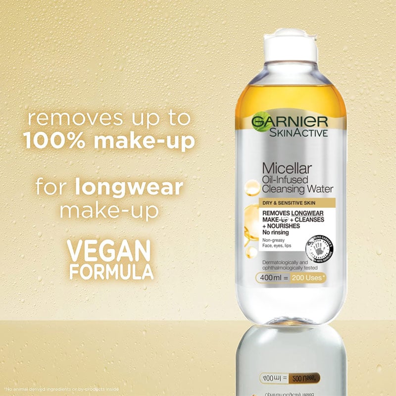 Garnier Skin Active Micellar Oil Infused Cleansing Water For Dry & Sensitive Skin 400ml •