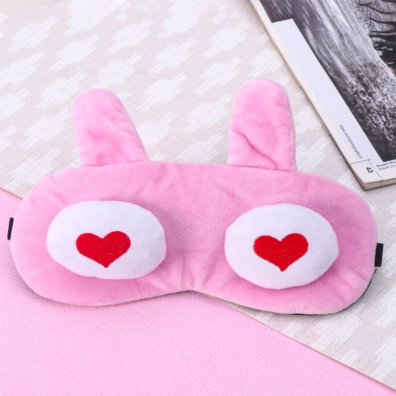 Girls Sleeping Cute Cartoon Eye Mask - Pink White Love Cat