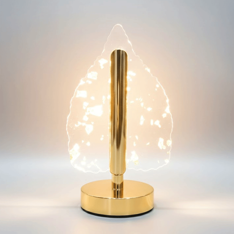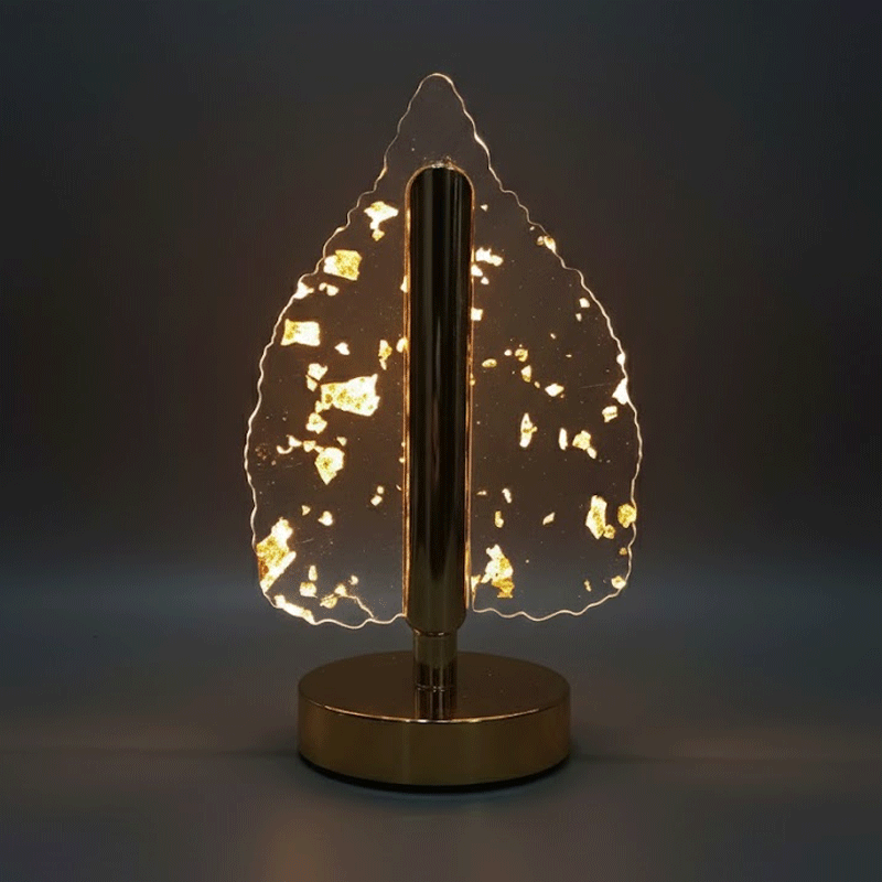 - Transform your living space into a sanctuary of elegance with the Golden Foil Ember Luminous Gilded Leaf Table Lamp.